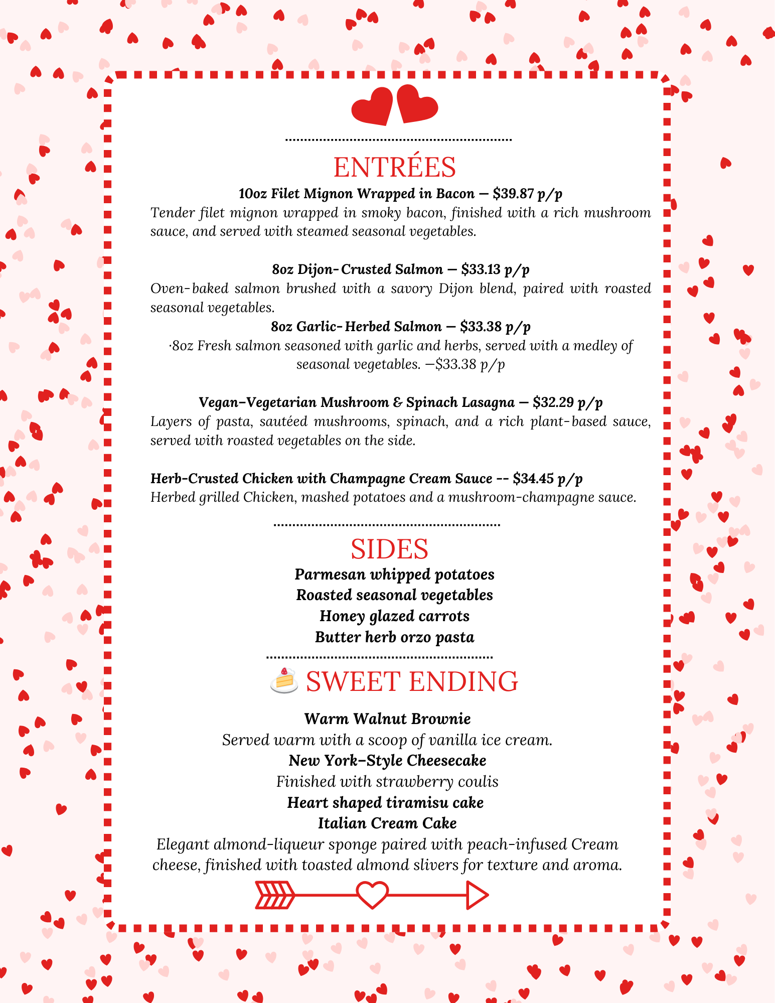 Dining, cocktail, buffet, food stations, and plated style.Bartending service